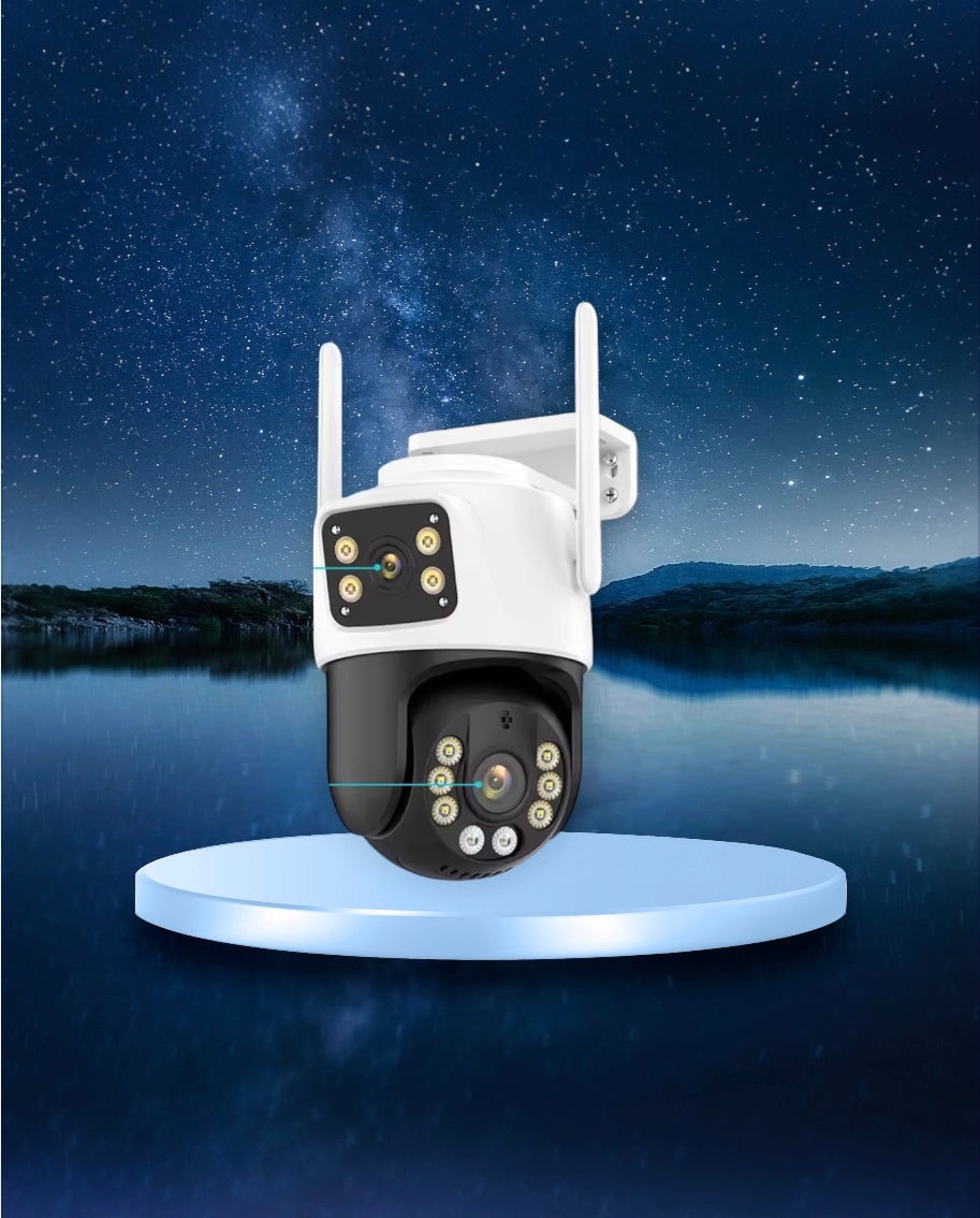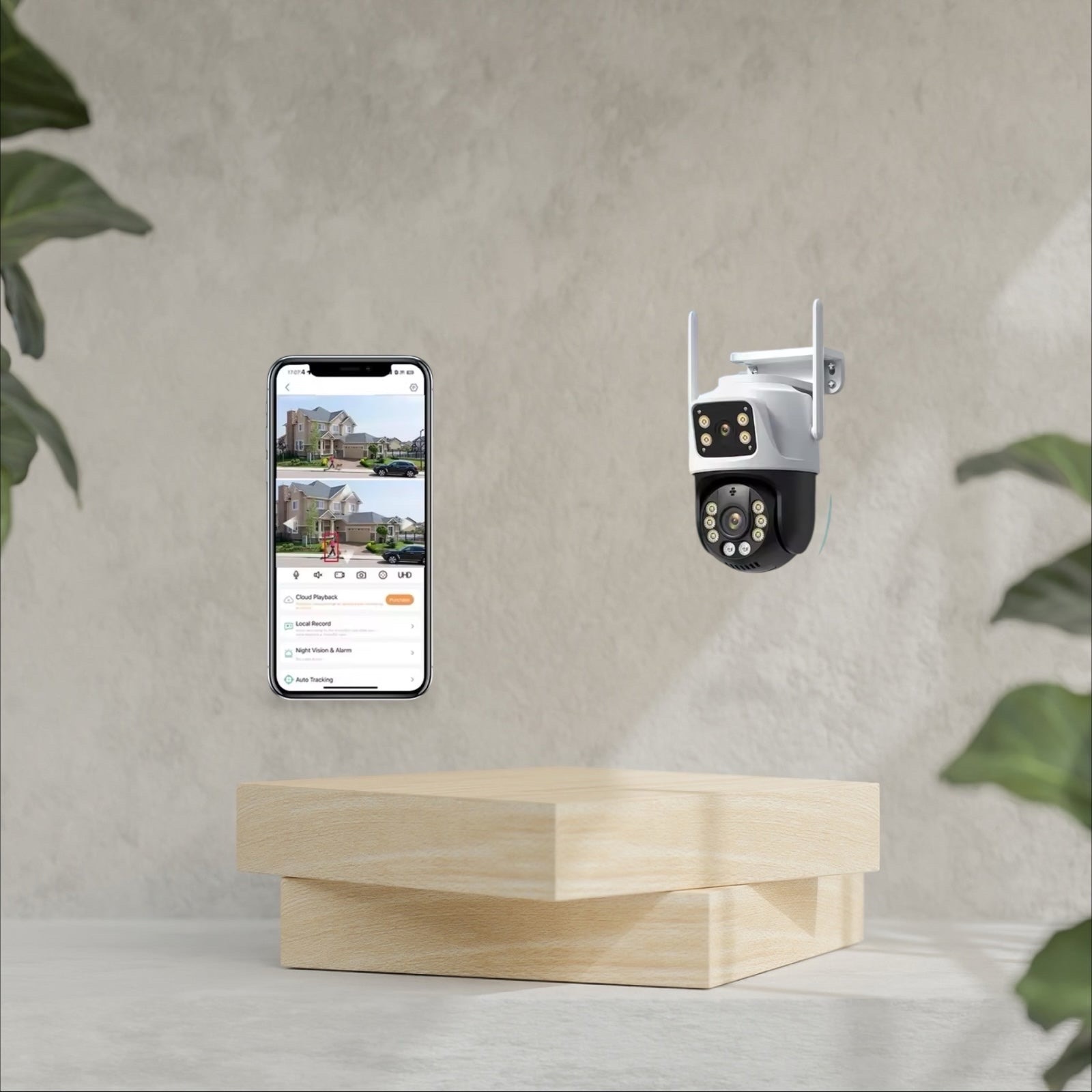 Captura desde dos ángulos distintos al mismo tiempo, brindando una visión más amplia y precisa de tu entorno. Perfecta para patios, cocheras, entradas o perímetros.
