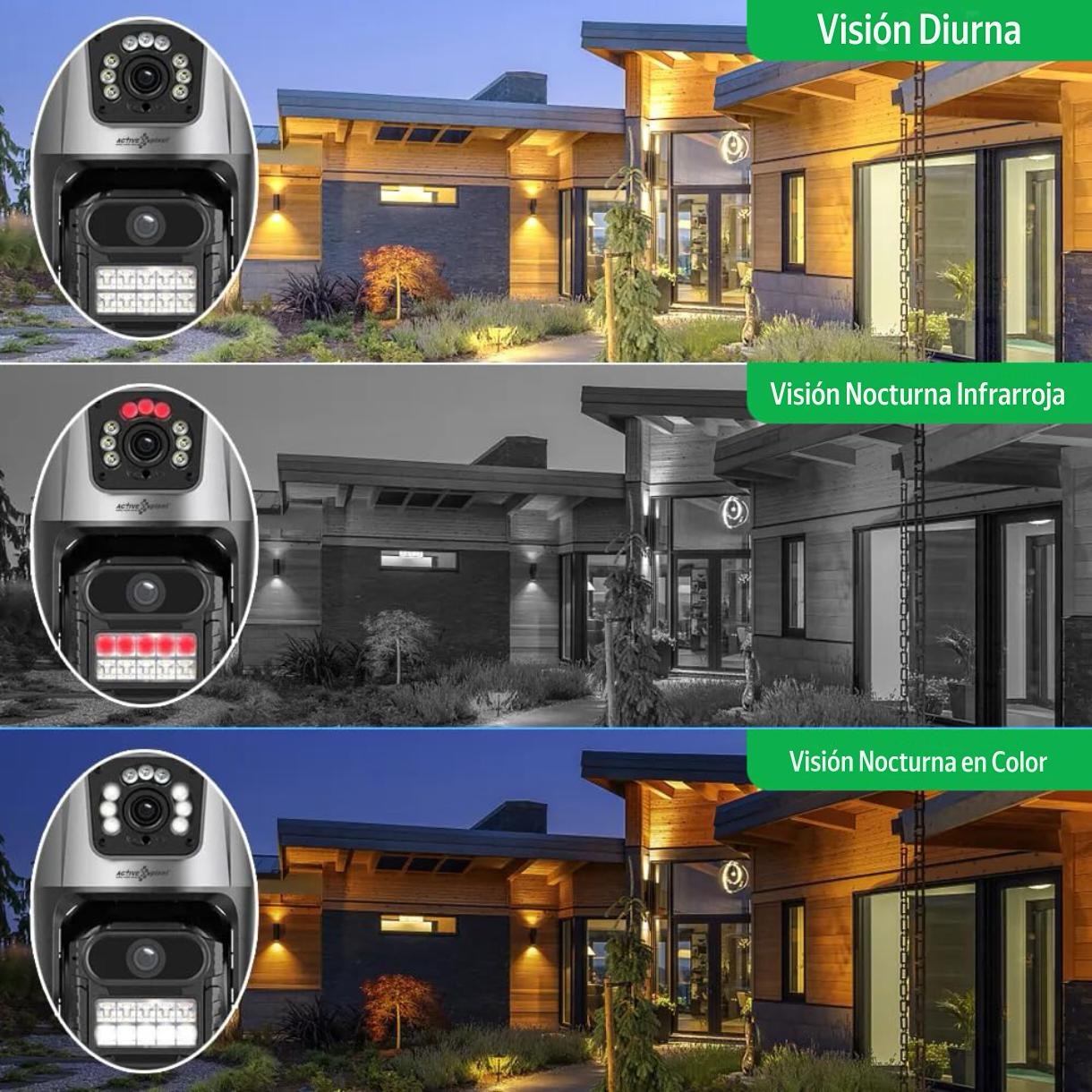 Dos lentes de alta resolución que trabajan en conjunto para capturar una imagen panorámica de 180° o más, con detalles increíbles de día y de noche. No pierdas ningún ángulo ni detalle importante.