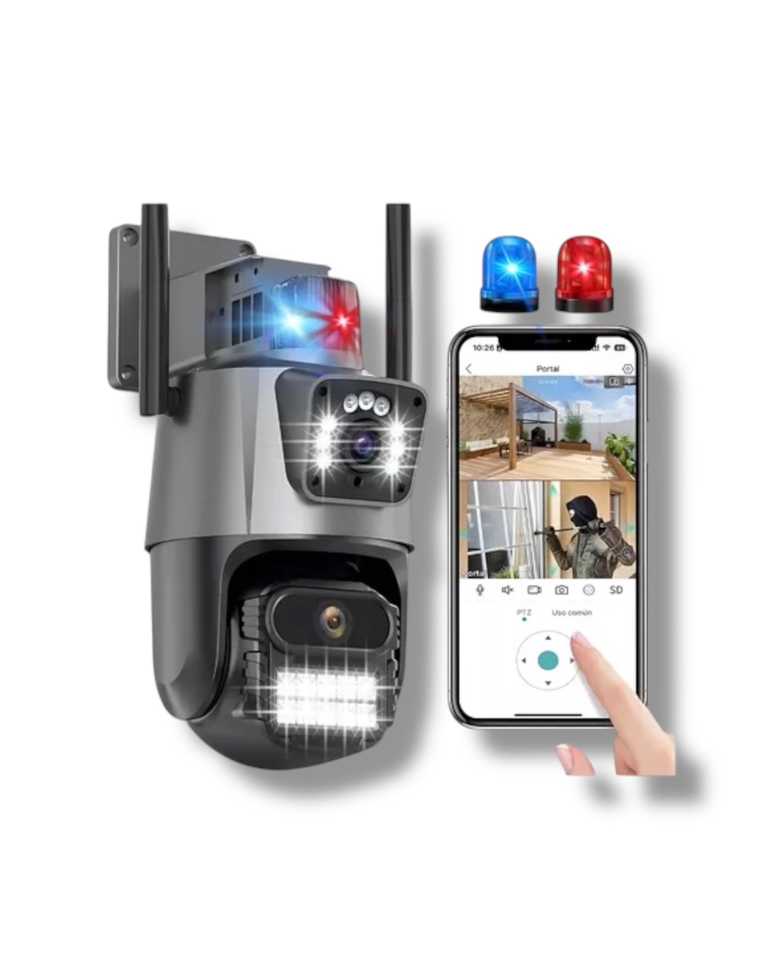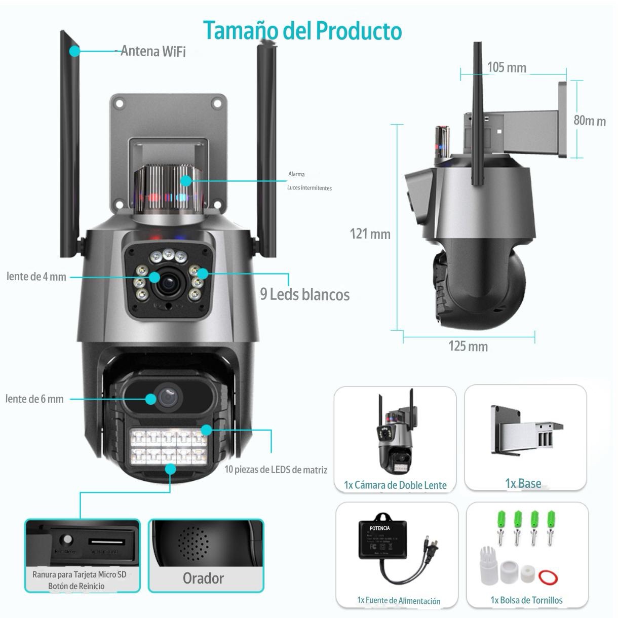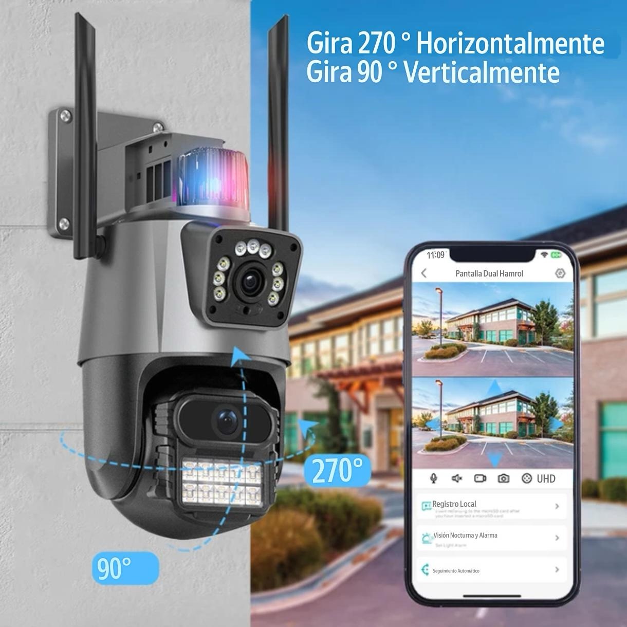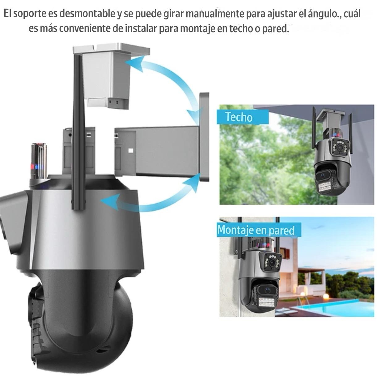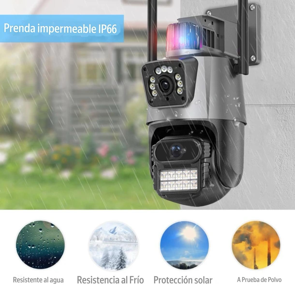 Eleva el nivel de seguridad en tu hogar o negocio con esta potente Cámara de Seguridad WiFi 4K con Doble Lente, diseñada para ofrecer una cobertura completa, imágenes ultra nítidas y control total desde tu celular. Ideal para exteriores o interiores, esta cámara inteligente combina tecnología de última generación con facilidad de uso.