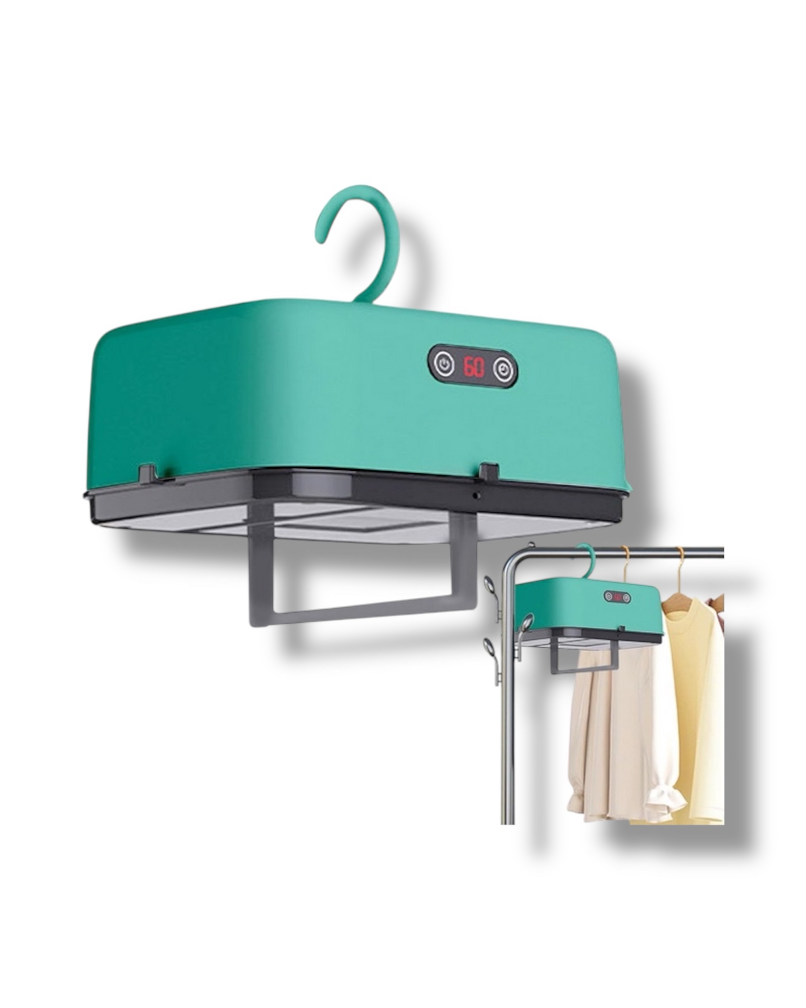 Secador práctico y compacto, ideal para espacios reducidos como departamentos, baños o balcones. Su diseño plegable permite un fácil almacenamiento y su gancho resistente facilita colgarlo en diversas superficies.